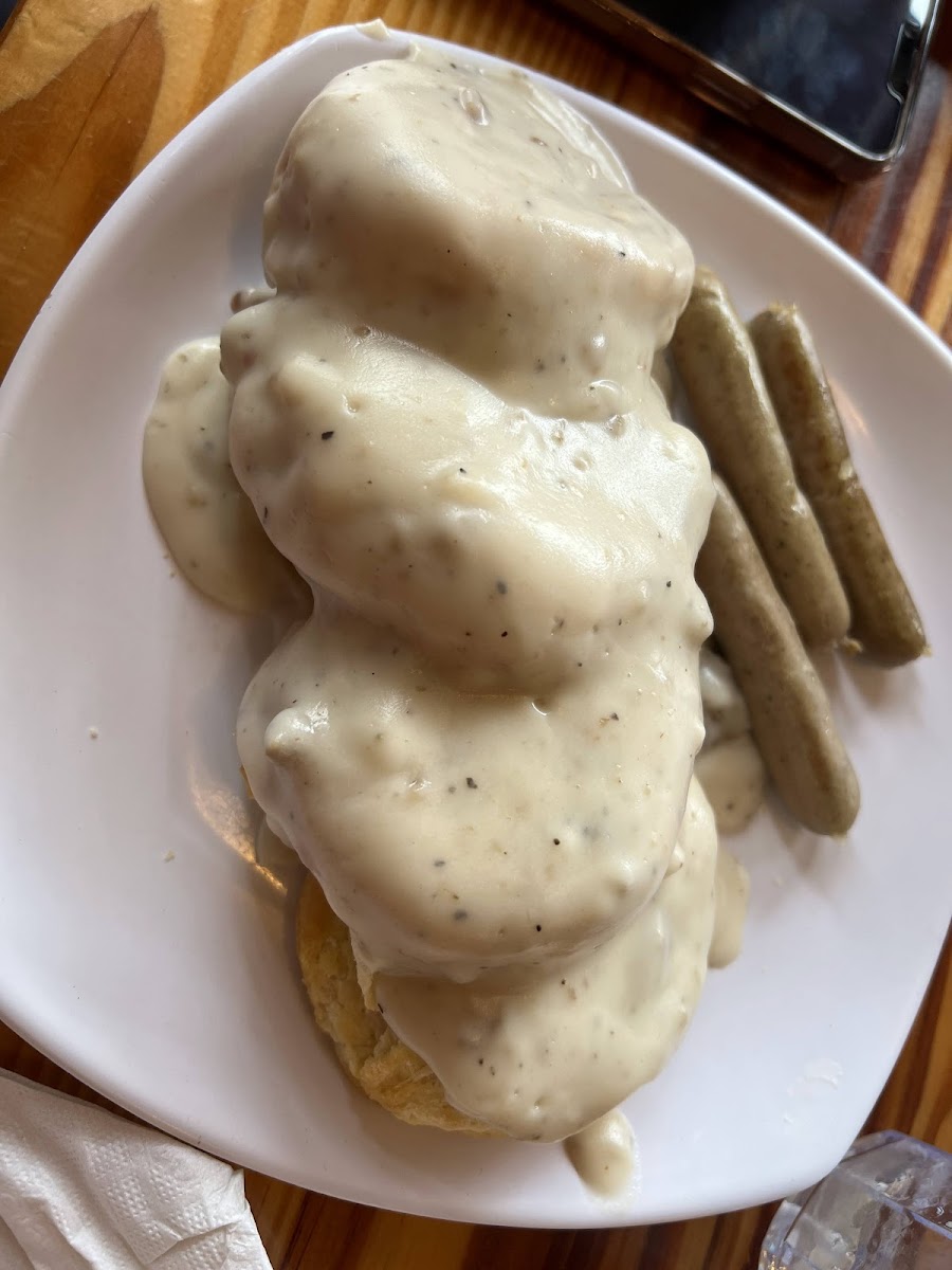 The menu leans comforting without being boring. Breakfast plates come out hot and generous, and the bakery case rotates through cinnamon rolls, muffins, and seasonal pies. I tried a country-style breakfast with eggs and house-made toast, and the bread alone could’ve carried the meal. There’s a noticeable difference when dough